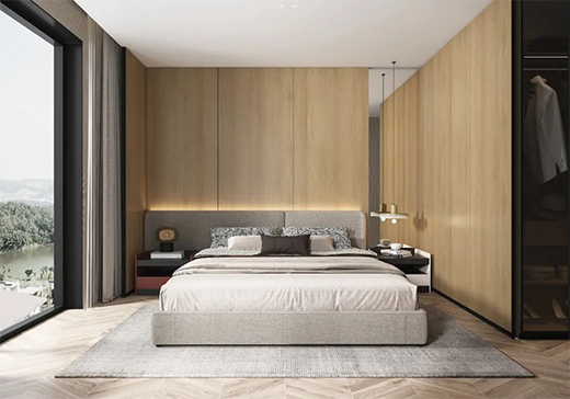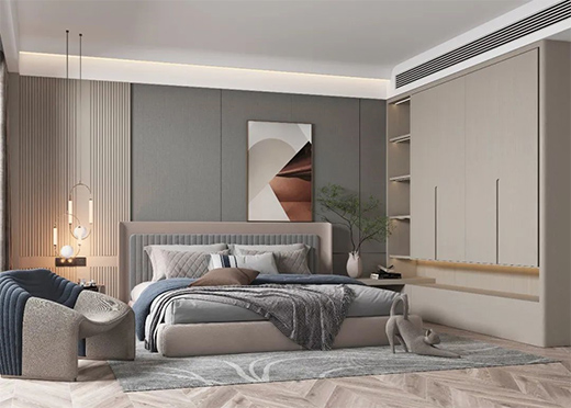 如果不是提前规划好衣柜位置,无论哪种品牌的成品衣柜,都不会很好的契合已经装修好的居家环境。尤其是已经做好踢脚线的墙边,柜体与墙体的间隔更是清理死角!