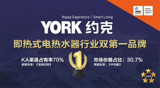 据了解,目前YORK约克品牌及产品已全面覆盖全国一线市场和大部分二三级市场,KA渠道占有率超70%,恒温即热式电热水器销量持续三年保持全国第一(中怡康、奥维云网市场调查数据报告),2019年主营产品全面纳入苏宁集团自主品牌、苏宁零售云的头等舱品牌,目前全国家电连锁渠道门店数量超3600家,自营渠道门店超7000家,全国开设了86个“约克家立方智能厨卫体验馆”,并在中山和嵊州建立了配套完善的产品研发中心和生产制造中心。近5年来,YORK约克品牌凭借着持续的技术创新、过硬的产品质量、良好的售后服务以及线上线下全渠道运营的发展方针,实现了2016-2019年连续4年业绩保持连年翻番的成绩,即使是2020年度面临新冠疫情极端恶劣的市场环境下,仍然做到15%小幅增长,年销售业绩保持3亿元以上。