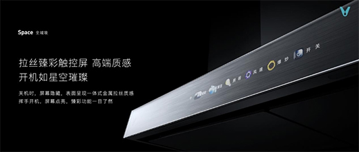 设计上,Space 云米AI智目油烟机采用拉丝臻彩触控屏,精致外形体现对美好厨房的生活追求。关机时,屏幕隐藏,表面呈现⼀体式金属拉丝质感。挥手开机,屏幕点亮,如星空璀璨,臻彩功能一目了然。