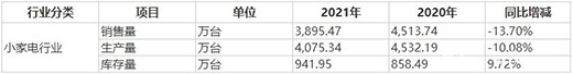 2020年国内消费需求减弱,但居民受困家中,小家电产品市场呈现“井喷式”增长。至2021年,小家电市场骤然降温,整体销售规模下降。据奥维云网数据,2021年厨房小电(12个品类)零售额为514亿元,同比下降14.1%;零售量为23744万台,同比下降13.5%。