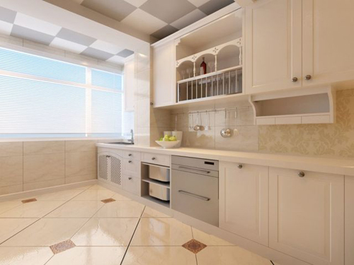 在该整体厨房设计图中,橱柜安置传承了西方文化底蕴,静静泛着影影绰绰的灯光,朦胧、浪漫之感油然而生。整个空间摒弃传统欧式橱柜的鲜亮色彩,选择淡雅素净的色调,营造出温馨典雅的烹饪环境。这个简欧风格的厨房,选择了白色为主色调,给人一种简洁明快的感觉。