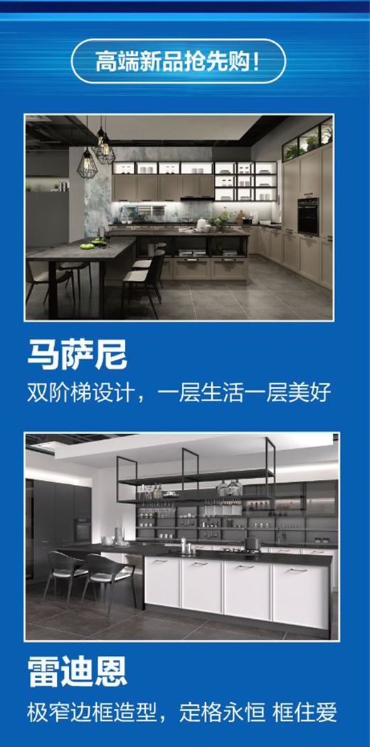 除此之外,活动期间司米橱柜更有高端品质、升级套餐供君选择,正如演绎层次感生活的马萨尼橱柜和诠释永恒之爱的雷迪恩橱柜,都是极具设计风格和独特理念的橱柜款式。