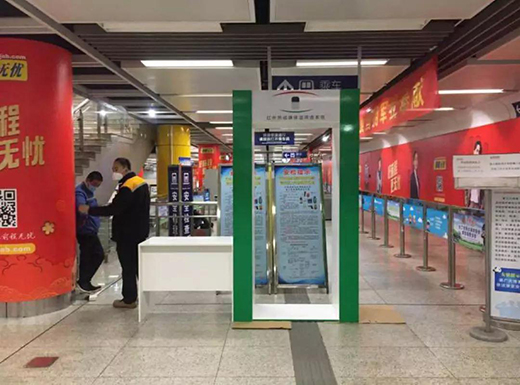 (图:我乐家居在南京地铁安装首批体温筛查安检门)