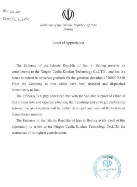 善行有爱,卡利亚不锈钢橱柜驰援伊朗 驰援世界!