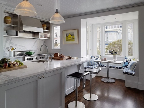 美式人家的厨房要求大气,足够宽敞且充满了自然的韵味,木质的橱柜上呈现出高贵典雅的质感,色泽成熟稳重,橱柜所展现的精致工艺细节将美式风格体现得淋漓尽致。顶部的收纳空间与冰箱的布局摆设将空间设计得恰到好处,给人以舒适的视觉效果。今天,中国著名橱柜品牌的小编就给大家介绍几款美式L型橱柜,保证让您的厨房美观大方时尚。