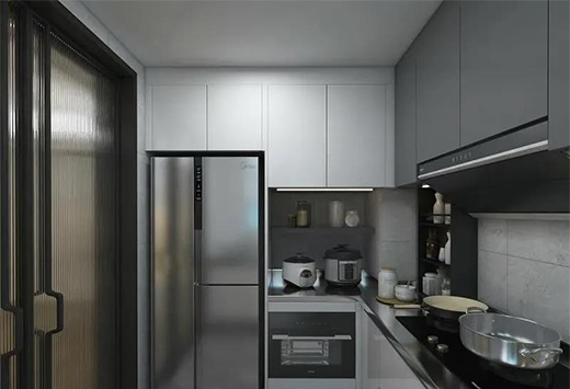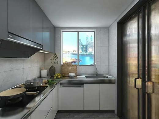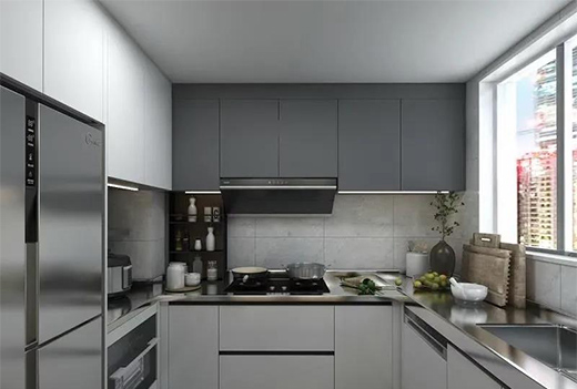 U字型的设计,超强储物能力的厨柜定制来节省空间,其美观时尚、经济适用的定位满足现代都是人的需求。