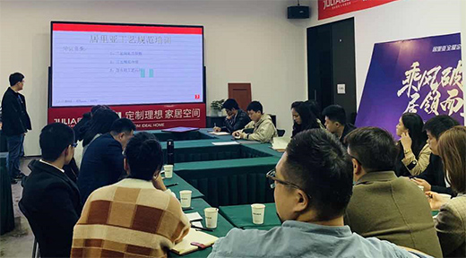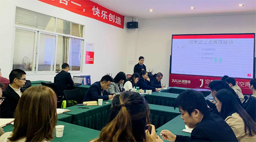 下午,生产部门高长青高老师为大家带来了精彩的<实木和订单培训>课程。高老师较为详细地梳理了公司生产、销售及安装、服务中的重点问题,并以此展开了详细讲解,为大家分享了居里亚工艺流程、实木结构等内容,为公司终端服务团队提供了系统化、针对性培训。