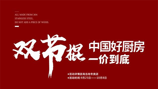 家是疲惫归来的身心休憩之地,卡利亚是万千家庭可放心信赖的优选品牌。今年恰逢中秋遇上国庆,双节就应更结棍。2020年9月25日-10月8日,一场“中国好厨房·双节棍一‘价’到底”狂欢盛宴将席卷而来,我们将敞开怀抱,用热情的服务,展现优质的全钢产品,秀出硬核的实力风采,开启不锈钢厨柜的“定制TIME”。