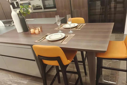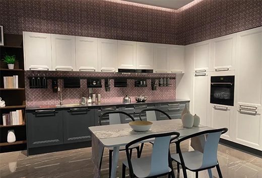 卡利亚还拥有自主研发的热固微晶工艺,其中的烟熏色、仿古柚木等木纹自带轻奢高级感,提升厨柜的颜值,让厨房不再单调。此外,仿岩板、纯色系也适配当下流行的多种风格,表达对高品位生活的追求。