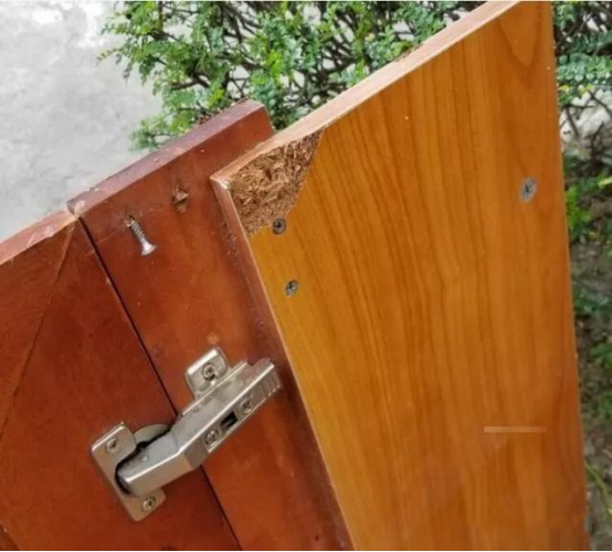 打开橱柜门后,金玉其外败絮其中的品质马上暴露出来了!这就是客户毫不犹疑换厨柜的终极原因。