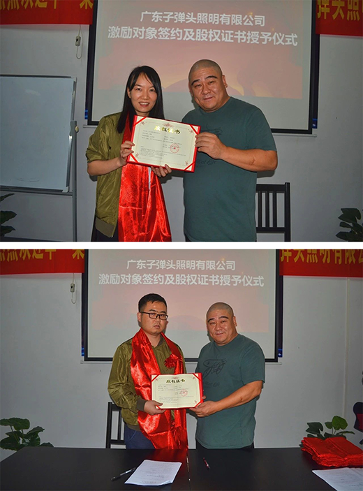 在此,恭贺今天家人们与子弹头照明“喜结良缘”,成为首批股权激励对象。相信在不久的将来,会有更多勤劳优秀、业绩卓越的家人们,通过努力成为子弹头照明的合伙人。