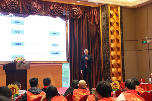 紧接着盛世经典何教授再次登台,为优享家人们带来满满干货!何教授通过场景化演讲,为在座嘉宾带来“渠道拓展与终端卖货”的系统方案。将品牌规划内容融入到终端卖货技巧中,实现真正的品牌投入转化为销量。何教授的演讲让现场经销商醍醐灌顶,更得到了优享领导的认同与肯定!