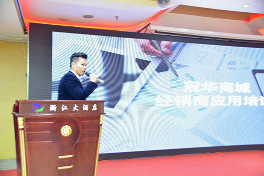 11日下午会议伊始,冠华照明邀请到实干家实业有限公司创始人韦煜坤和河北分公司总经理柳毅进行实例分享,培训代理商员工管理和店面销售技巧。