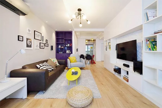 光的应用在客厅里有很大的作用,无论是低垂的顶灯,还是门旁的落地灯,以及茶几和窗台上的白色烛光,让客厅具有品质的同时也更加具有温暖度。