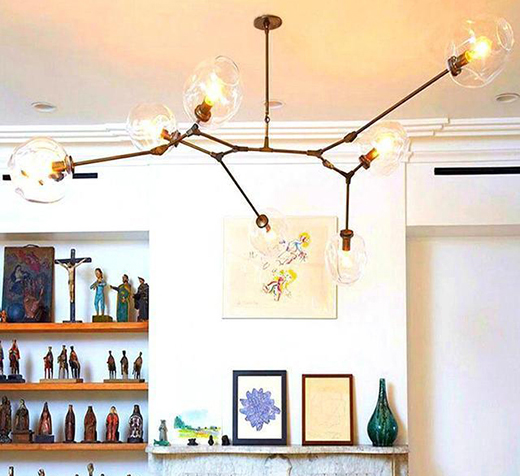 魔豆吊灯的设计灵感来源于蜘蛛,由众多圆形小灯泡组合起来,铁艺与玻璃的组合带来独一无二的美丽,同时灯罩具有通透性,使用者也可以轻易调节光线照射的方向,为空间创造惊喜和美感。