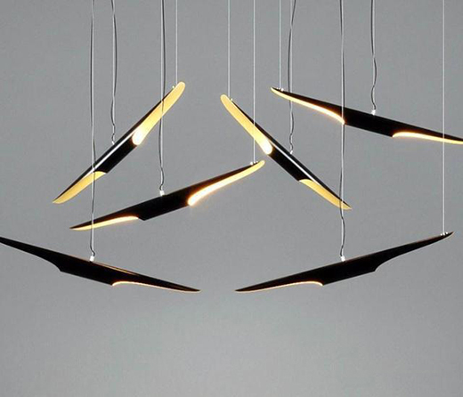 Coltrane吊灯带有浓浓的极简主义和工业气息,竹简的造型可通过调整线的长度,让吊灯产生不同的倾斜角度。每一个灯柱都独立存在,又相互结合成为一个整体,让光线有更多的展现空间。