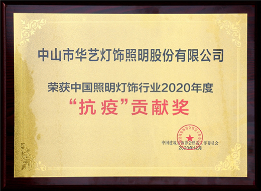 沧海横流,方显英雄本色!本届评选除常规奖项外,为表彰2020年中积极投身“抗疫”事业的企业,评委会特设“中国照明灯饰行业2020年度‘抗疫’贡献奖”。其中,彰显一片赤诚之心的华艺照明荣获该特殊荣誉。