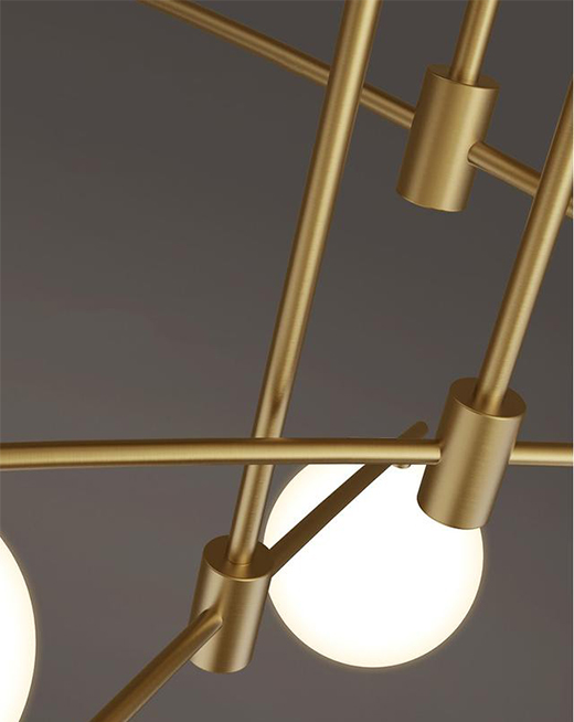 现代的灯具装饰华丽,而且制作更加复杂,人们对于灯具的需求不再着眼于实用方面,更加注意了灯的观赏作用。在精心布置的房间里,装饰一盏充满艺术品位的灯,会给整个房间增添美感,更能陶冶人们的性情,驱散心头的烦恼。铜美家旗下的铜因特(INTACT)这款魔豆分子灯采用乳白色的圆球灯罩,给人带来温润柔和的感受,搭配纤细简约的黄铜灯体,结构错乱有序,将优雅与平衡展现得淋漓尽致,呈现一种时尚质感。