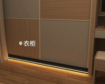 同时,室内墙转弯,高差变化,易于滑倒等处应保证一定的光照,可以将传统踢脚线替换成可发光的踢脚线,引导老人正确认知路线。