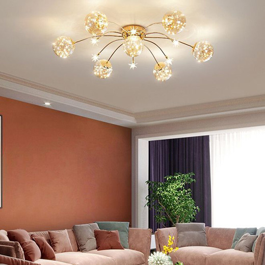 轻奢风的家装为家的每一处都有着看似随意却又精致的灯饰,如能为房间装饰一盏艺术感的满天星吸顶灯,顿时让房间生动、活泼起来,也是一个不错的选择。