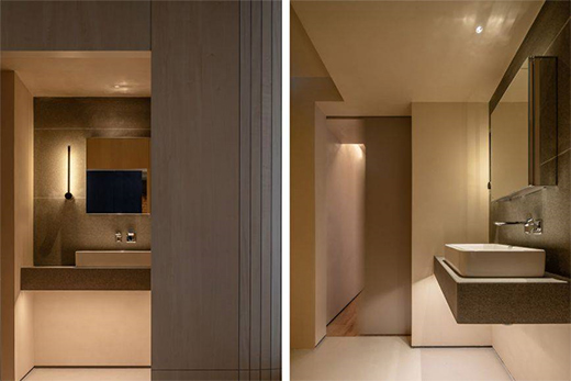 比如卫生间洗漱台上的灯光,因为有镜子的存在,所以这一块一般是做重点照明的。