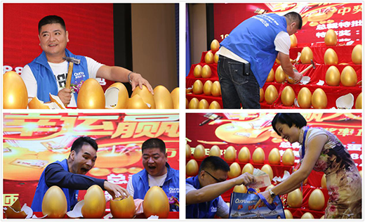 紧接着群富家照明深谙营销之术的营销总监袁金飞先生,在主持人的隆重介绍之下也闪亮登场,用其专业的营销技术与丰富的行业经验为群富家的经销商们“传道受业解惑”,细心地为家人们解读会议订货政策,让现场的嘉宾朋友都有醍醐灌顶,茅塞顿开之感。紧随其后的现场砸金蛋环节,更是引发全场大沸腾,砸得现金大奖的经销商家人们一个个都笑逐颜开,喜不自胜!