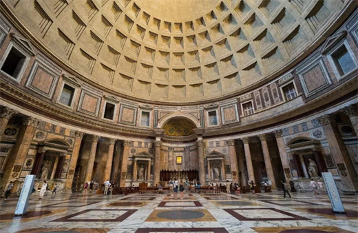 在罗马有一座国宝级的古建筑,万神殿。这座古罗马建筑最初建成至今已超过两千年,内里宏伟高耸的大圆顶,顶部有一个中空的圆孔,厚重的外墙,独特的大型柱子,尽显古罗马的辉煌气势。