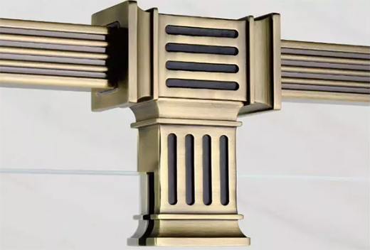 科林斯柱式围杆与固定夹连接、围杆与玻璃之间采用暗藏式双重锁紧技术,美观贴合,结构牢固。