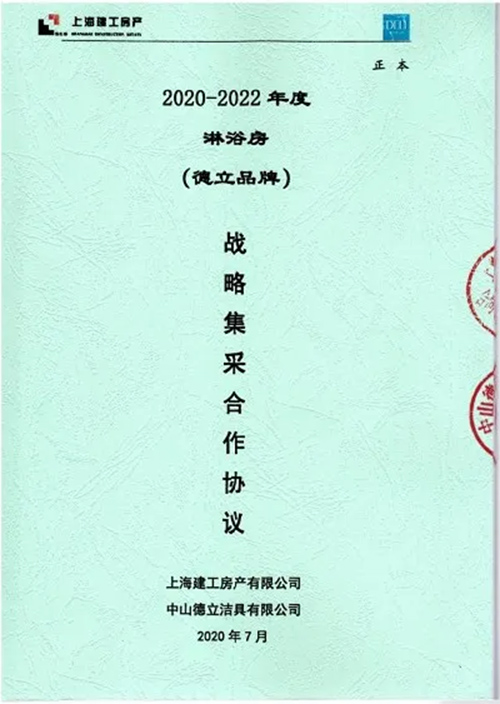 2020年,德立淋浴房与上海建工房产签订了2020—2022年度战略合作协议,正式达成战略合作关系。强强联合,共创未来理想人居生活!!