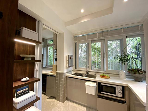 改造后的卫生间简洁通透,使邵军涛夫妇洗漱、做饭、炒菜更加便捷,安全又舒心。