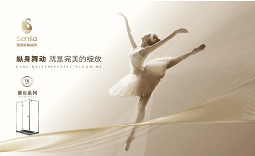 圣莉亚淋浴房,本次参展的核心亮点,除了产品,还有一个特色创新点:在品牌形象上的崭新定位,以天鹅和芭蕾的形象、概念,定义圣莉亚品牌未来高端轻奢发展。