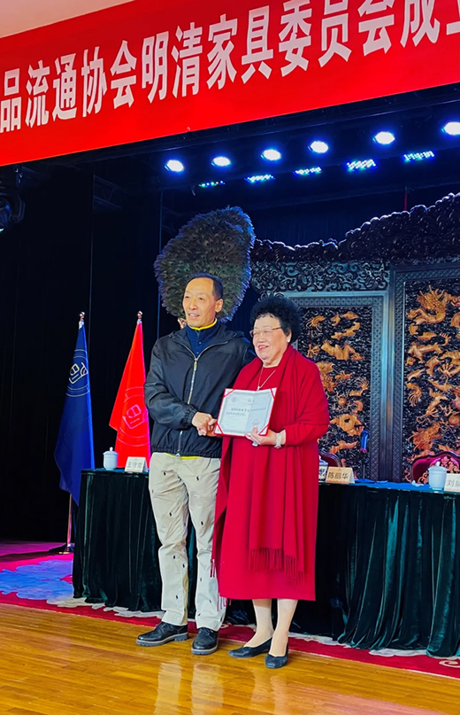 2020年11月25日,中国明清家具委员会成立大会暨首届明清家具高峰论坛在北京中国紫檀博物馆召开。中国紫檀博物馆馆长陈丽华、中国记协原党组书记翟惠生、中国木材与木制品流通协会会长刘能文、中国文化书院院长王守常、故宫博物院(研究)研究员胡德生、恭王府文物管理处原处长鲁宁、中国古代家具研究专家周默、中国嘉德拍卖公司艺术品部总经理乔皓、居然之家常务副总裁任成、北京紫檀文化基金会理事长迟重瑞等专家、学者及企业代表和收藏家100余人出席了会议。