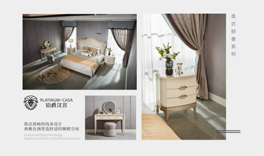 尽力使产品的每一块设计、制造、工艺和谐统一。铂爵汉宫家具适用于任何家庭的装修风格,将美式轻奢风格中的优雅与品位传达给每一个家庭。保持一种创新的魅力,在过去和现在都被全世界所欣赏。