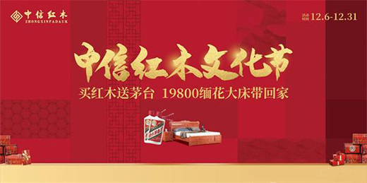 中信红木文化节期间,以“买红木送茅台”回馈全国红木消费者,更将“19800缅花大床”的钜惠带给每一个中信红木的忠实粉丝,以中信实力与中信诚意引爆了终端红木市场,点燃了国人内心深处对红木的向往。这不止是一场终端联动活动,更引领了一场属于“中信红木”的品牌文化风潮!