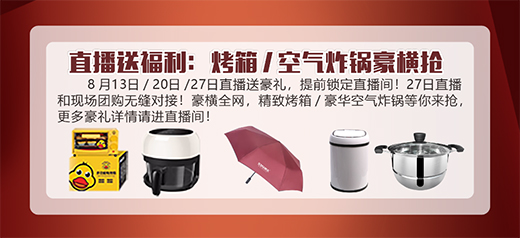 27日直播和现场团购无缝对接!豪横全网,精致烤箱/豪华空气炸锅等你来抢,更多豪礼详情请进直播间。