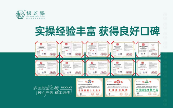 作为板材行业中的民族领军品牌,板芝福坚持对产品安全及产品质量高标准要求,用匠心打造品质,提高质量供给水平,引领放心消费。经过十余年的不懈努力,板芝福通过ISO9001质量体系认证、ISO14001环境体系认证、EPA认证、CARB 认证、FSC 认证。公司建有自己的质监系统及检测中心,严格控制产品质量。板芝福立足环保,以维护消费者健康利益为己任,产品通过中国绿色环保产品认证,已达到并优于国家标准。