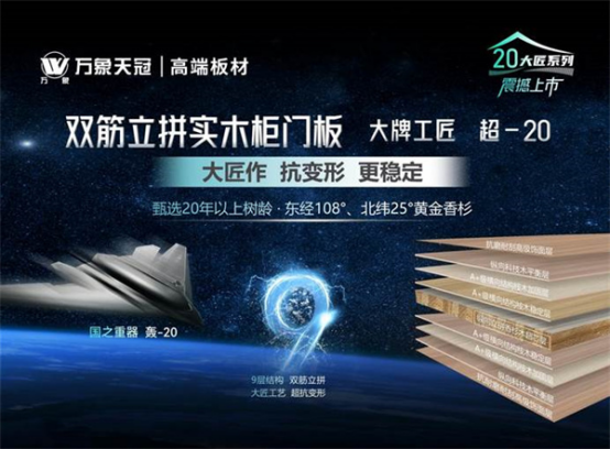 除了在产品品质、颜值与环保力上严苛把关,万象天冠高端衣柜定制还就产品的市场竞争力持续加码。值此25周年来临之际,“万象天冠20大匠系列-双筋立拼实木柜门板”和“万象天冠20大匠系列-双筋实木生态板”两个系列产品上市,聚焦家居健康、定制美学,人居内涵、先进工艺、实用价值等五大维度,彰显品牌市场价值,引领行业发展风尚。