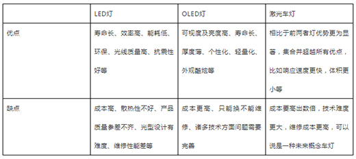 LED车灯、激光车灯与OLED车灯的发展对行业而言是一件利好的事情,它们各有自身的优势,也存在着相应的缺点。