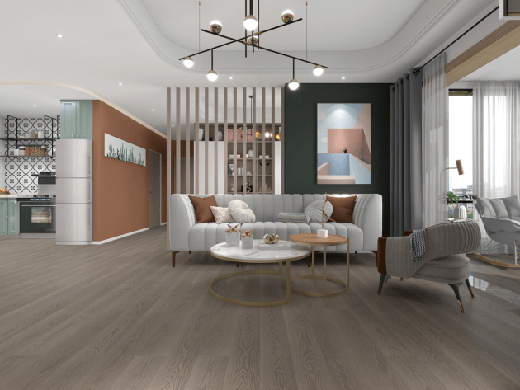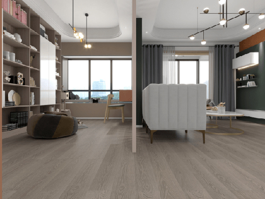 其实从全系列来看,庆典10号最显眼且独特,冷灰的色调内敛神秘,带着些许的酷感,却又奇妙的与大多风格的家居相得益彰,复刻自木纹的元素设计在视觉上极富有层次感和立体感,诠释着多层实木地板艺术美学的创新趋势和全新高度。