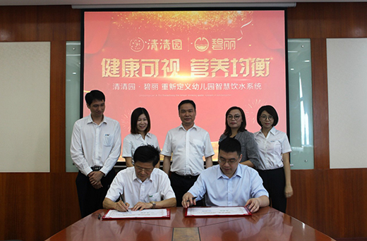 2019年7月13日上午,“健康可视,营养均衡,清清园·碧丽重新定义幼儿园饮水系统”的新品发布和市场运营合作签约仪式在广东碧丽集团总部隆重召开。华园控股董事长吕志荣博士、华园控股轮值CEO史龙博士、碧丽集团董事长巫宗权先生及集团高层领导出席签约仪式。本次签约仪式是对7月3日举行的共同构建“健康智慧幼儿园”战略合作发布会工作的进一步深化,清清园和碧丽联手重新定义幼儿园饮水系统,将开创校园智慧饮水新局面。