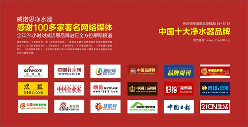 热烈祝贺:威诺思净水器登上中国十大净水器品牌榜单