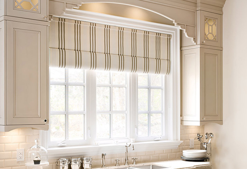 欧式奢华而又大气,欧式风格家居空间之中,欧式厨房窗帘的独特幕布式悬挂方式,也将体现了欧式之风范,利用垂直升降的方式可以开合窗帘,不管是收起还是垂下,都将与整体居室风格十分的和谐,而且有很好的遮光性,操作也很简单。