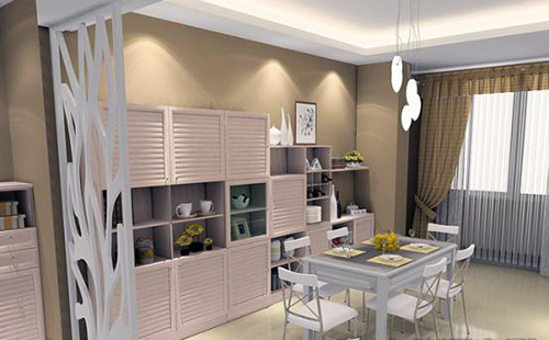 北欧阳光风格的设计现在是非常流行的,给人的感觉非常地温暖而有魅力,色彩的搭配是非常和谐的,黄色系列的墙面装饰和窗帘,充满了阳光的气息,错落有致的柜体造型也会很有层次感的,阶梯式的餐边柜造型很有设计感。