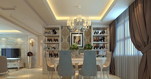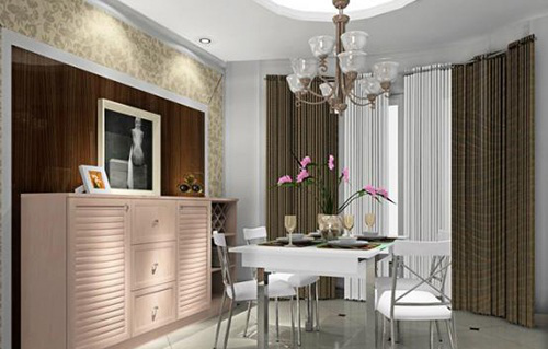 优雅的欧式餐厅窗帘效果图展示出来的几种风格都是相当不错的,可以很时尚,也可以很稳重,也可以很浪漫,对于都市的不同群体来说,值得选择,追求的是生活的情调。