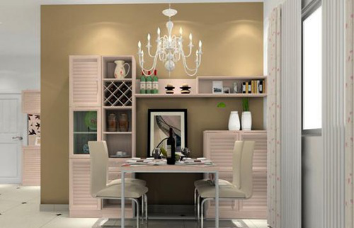 简单的背景墙装饰和餐边柜之间的搭配组合就营造除了欧式的简约风格,整个家居的氛围是相当不错的,黄色的墙面给人一种温暖的感觉。灯饰的造型也是很有特色的,阳光般的既视感,深暖系列的色彩温暖暖了整个空间,白色额的窗帘让光线变得柔和,有一种温馨的气息。