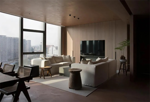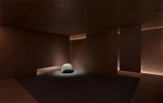 该项目中将石头、旧物等自然物与现场环境相结合,物质或物体被安排在一个场所,这个场所就生动的产生了“与存在相遇”的关系。将空间中的全部物品融为一体,不再有分明的主次关系,每一件单独的装饰都在诠释侘寂的极简理念,都实现在空间中最高的自由化。