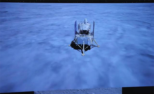 ↑12月1日拍摄的嫦娥五号探测器着陆画面(新华社图)
