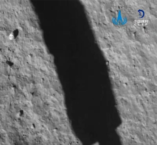 ↑嫦娥五号探测器软着陆后降落相机拍摄的图像