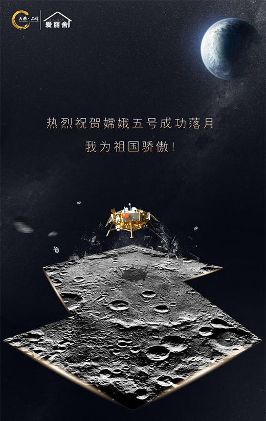 热烈祝贺嫦娥五号探测器成功落月,爱丽舍艺术涂料为祖国骄傲