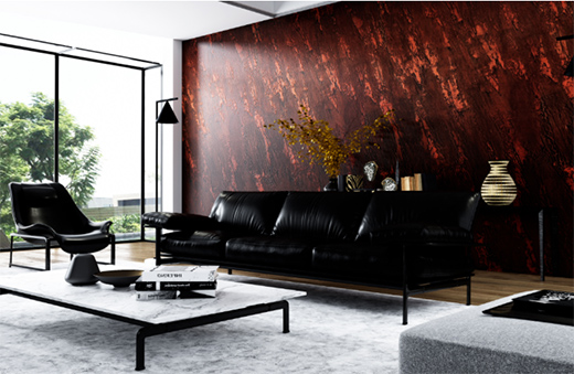 经过艺术构思,借助肌理材料,通过不同的施工工艺,艺术涂料可以展现出千变万化的肌理层次和艺术美感。